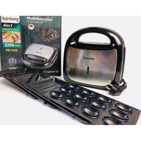 Мультимейкер: гриль, бутербродниця/сендвичница, вафельниця, горішниця 4 в 1 зі знімними формами Rainberg, 2200 Вт. У верхній частині корпусу розташовані два індикатори, які повідомлять Вас про підключення пристрою до електромережі, а також про досягнення оптимального нагріву для приготування. На ручці електроприладу передбачений спеціальний затискач, за допомогою якого ви гарантовано рівномірно прожарите сендвіч, оскільки він буде щільно прилягати до обох нагрітих зон. Пластини мають рифлену форму, що в тандемі з антипригарним покриттям, забезпечує випаровування соків, які стікають у спеціальні канавки і не прилипають до їжі, завдяки чому вона виходить соковитою, але не жирною. Прилад володіє потужністю 2200 Вт, двома індикаторами роботи, автоматичним термостатом, що забезпечує постійну підтримку температури і захист від перегріву. Має 4 види насадок (знімних форм): "Вафлі гофре" ― приготування ароматних брюссельських вафель, які стануть відмінним десертом, або замінять на сніданок звичні оладки. "Сендвічі" ― використовуючи тостерний хліб прямокутної форми, ви приготуєте справжні англійські сендвічі зі всілякими начинками. Під час приготування вони поділяються на красиві трикутні шматочки. "Гриль" ― універсальна насадка. Її ребриста поверхня створює апетитний малюнок у вигляді смуг. Підрум'янити сосиски, шматочки хліба, лаваш і навіть приготувати яєчню ― ті деякі речі, які може справжній гриль. "Горішниця" - дозволить насолодитися десертом родом з дитинства. Приготування печива "горішки" не займе багато часу. Характеристики: Тип: Закритий (двосторонній) Пластини для приготування: Гриль контактний (гриль-тостер), Горішниця, Бутербродниця (сэндвичница), Вафельниця (бельгійські вафлі). Термостійкі ручки Корпус: нержавіюча сталь, термостійкий пластик. Індикатор живлення. Індикатор готовності до використання. Затиск-блокування. Мідні нагрівальні Тени Зручна установка форм з поліпшеним замком фіксації. Всі форми мають антипригарне покриття, легко миються. Можливість охолодження корпусу: Так. Антипригарне покриття: Так. Ручка з теплоізоляцією: Так. Харчування: 220-320 Ст. Розмір насадок: 23,5 х 13,3 см Потужність: 2200 Комплектація: Мультимейкер Rainberg 4 в 1. Змінні насадки: 4 шт. Керівництво користувача. Заводська упаковка.