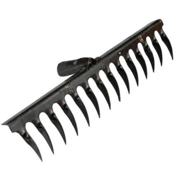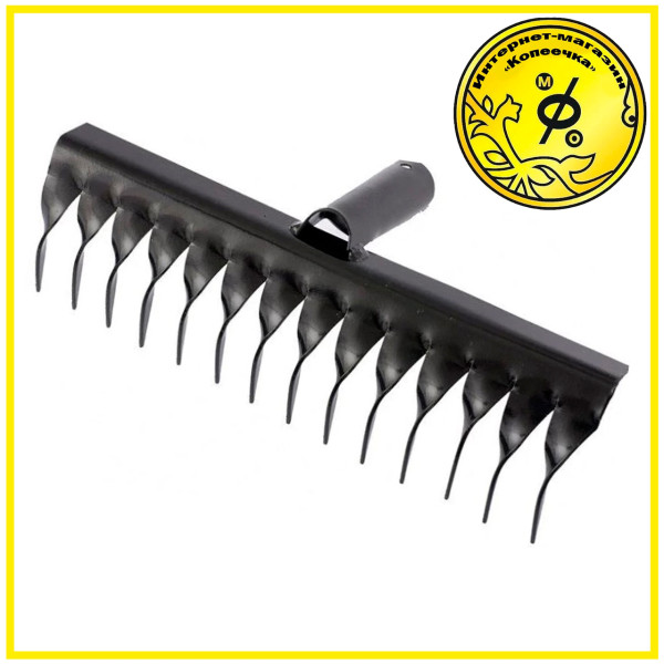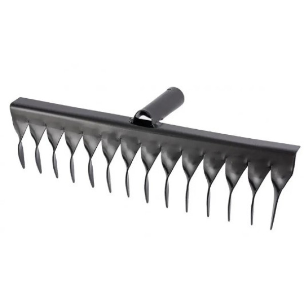 Граблі з крученими зубцями, без черешка є практичним інструментом невеликого розміру. Конструкція зручна при роботі з маленькими грядками та клумбами. Товщина зубів складає 2 мм. Виті зуби розбивають будь-які грудки землі.